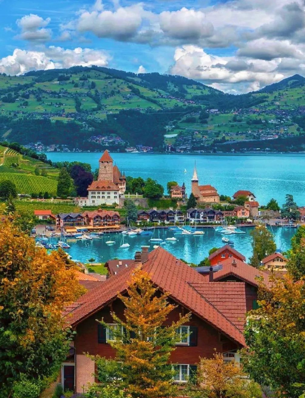 The most beautiful town in the world 💗 Switzerland - Interlaken The snow-capped peaks of the Maiden's Peak, the turquoise Lake Thun, constitutes the most classic scenery of the Alps. The town is quaint and exquisite, everywhere is a postcard-like picture. It is recommended to experience the mountain train to feel the shock of the glacier paradise.