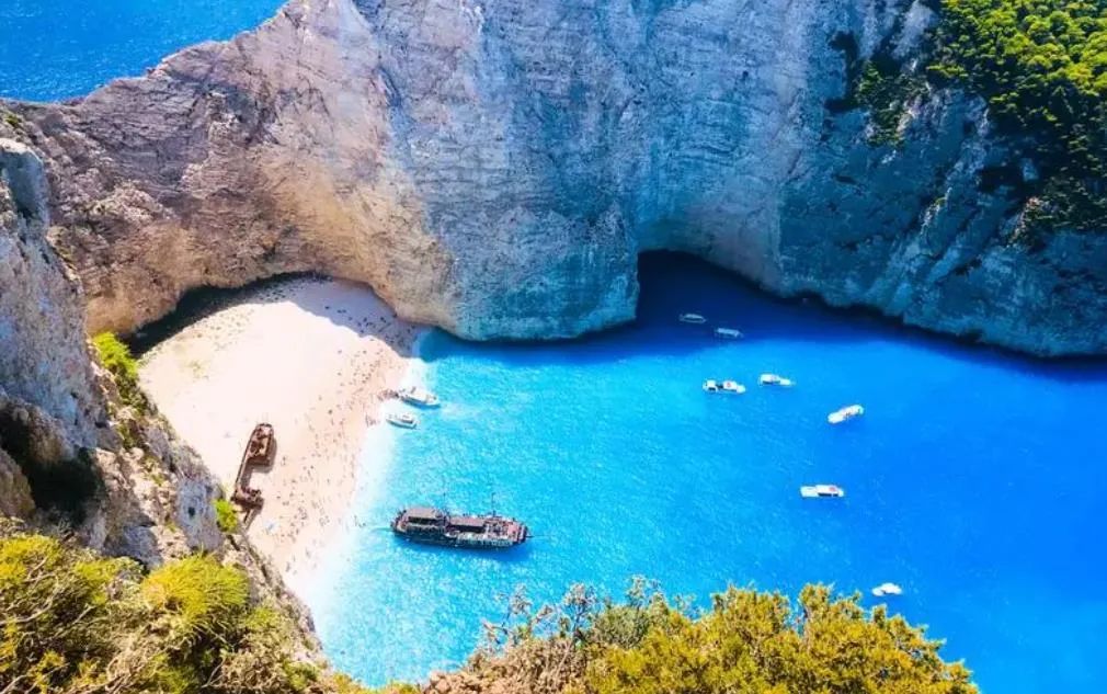 Located on the island of Zakynthos, Greece, Shipwreck Cove is the most famous attraction in Zakynthos, Greece. 1983, the smuggler ship Zakyn ran aground while transporting cigarettes, and the place was named Shipwreck Cove since then. There is a beautiful legend that if you take away a stone from Shipwreck Bay, it means that you will have to return here again in the future.